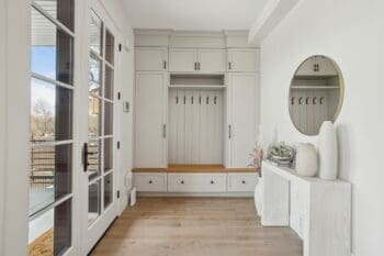 Upstairs, the serene primary suite offers breathtaking mountain views, a spa-inspired bath, and a custom-designed walk-in closet, epitomizing luxury living. A second spacious en suite bedroom and an elegantly designed laundry room complete the upper level, ensuring both comfort and privacy.