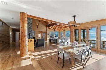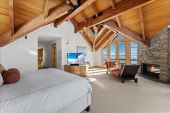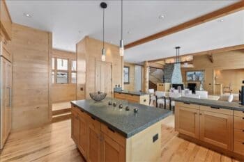Ski enthusiasts will appreciate the convenience of direct ski-in/ski-out access, with a well-equipped ski prep room offering storage for gear. Whether heading to Deer Valley’s Mountaineer Chair lift or the Jordanelle Express Gondola, accessing the slopes is a breeze. Additionally, the home features a 828 square foot heated garage, three fireplaces, five ensuite bedrooms, seven baths, a den, and radiant floor heating throughout.