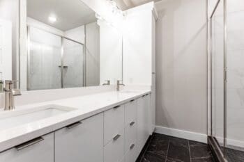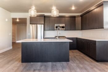 Among the residences stood an elegant 3-bedroom, 2-bathroom condo, its single-level layout a perfect blend of sophistication and comfort. The heart of the home—the kitchen—was a chef’s sanctuary. Gleaming Quartz countertops stretched across the space, while a chic backsplash added a touch of refinement. Under-cabinet lighting illuminated the sleek design, highlighting the premium Viking appliances ready to inspire culinary masterpieces.