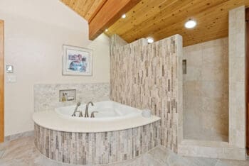 Spanning 4,103 square feet, this beautifully designed home features 3 spacious bedrooms and 3 well-appointed bathrooms. Upon entering, you’re greeted by two expansive living areas that exude warmth and comfort. Vaulted ceilings and expansive windows invite soft natural light, framing views of towering trees and creating an atmosphere of tranquility. A cozy fireplace anchors one of the living spaces, adding to the inviting ambiance that makes this home perfect for both everyday living and entertaining.