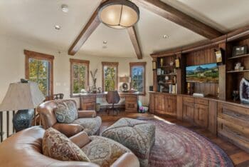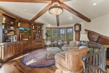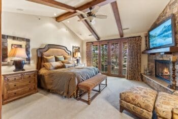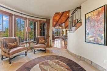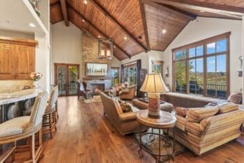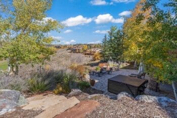 This remarkable Ranch Club Cabin is the largest and most distinctive residence available, boasting over 4 bedrooms, an office, multiple patios, fireplaces, laundry rooms, and breathtaking views. Countless custom upgrades have been added, including new exterior stain/gutters, HVAC, boiler, AV/Sonos equipment, WiFi, washing machines, a Viking refrigerator/double oven, fire pit, and a brand-new hot tub installed in 2023. For a comprehensive list of features, refer to the “Features List.” The property is graced with beautifully landscaped gardens and is meticulously maintained inside and out. The Remington floorplan is considered the best among Ranch Club Cabins, and this home enjoys a premier location above the 10th fairway. With main-level living and an extraordinary top-level “eagle’s nest” office/den or potential 5th bedroom, it offers three captivating patios, including one with a fireplace, as well as a kitchen fireplace. Every room and patio offers majestic views, and the home features custom touches throughout. Professionally designed in 2017, it awaits your personal touch and is offered furnished with some exclusions. The purchase price includes a Promontory Social Membership. Replacement Sale Contingency will be used.