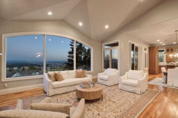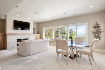 Beyond the kitchen, a grand great room beckoned, framed by a breathtaking wall of windows that invited the outside in, showcasing the sweeping vistas with every glance. Adjoining it, a spacious formal living and dining area awaited, perfect for both grand soirées and intimate family gatherings alike—each moment within, a testament to the home’s unwavering dedication to luxury living.