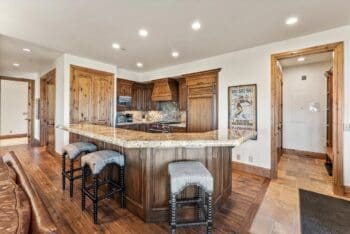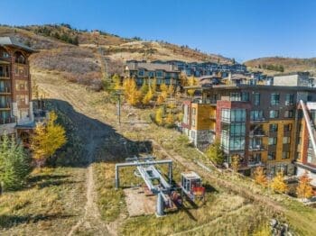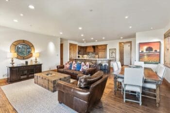 Nestled within the scenic slopes of Canyons Village at Park City Resort, Utah, Vintage on the Strand presents a captivating on-mountain condominium. This residence boasts elevated ceilings and an open, spacious layout that provides breathtaking vistas of the Basin. Step just across the street to access the ski trail conveniently. Featuring two bedrooms, two bathrooms, a cozy fireplace, and a gourmet kitchen equipped with granite countertops, high-end appliances, and exquisite custom wood cabinetry that seamlessly connects to the living and dining areas. Included is a one-car garage and the condo comes fully furnished and adorned with the elegant custom design by Sara Berry. Enjoy a short stroll to Canyons Village or hop aboard the complimentary Village Shuttle. For added convenience, it’s a quick drive to Salt Lake Airport or take advantage of free transportation to Park City Main Street. Please note that the master association charges a 2% transfer fee to the buyer at closing.