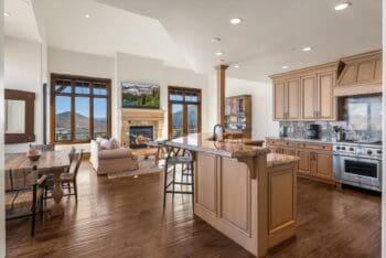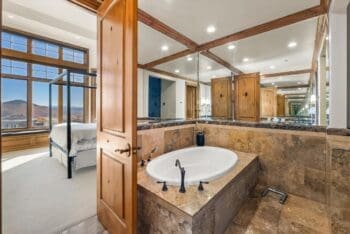 Welcome to Vintage on the Strand: An exquisite on-mountain condominium perched gracefully on the slopes of Canyons Village within Park City Resort, Utah. This remarkable residence boasts vaulted ceilings and an open, luminous floor plan that offers breathtaking views of the Basin. Simply step through the front door, and you’re just a stone’s throw away from the ski trail. With four bedrooms, five bathrooms, two cozy fireplaces, a gourmet kitchen featuring granite countertops, top-tier appliances, and exquisite custom wood cabinetry that seamlessly connects to the expansive living and dining areas, this home has it all. Enjoy a private outdoor hot tub and the convenience of a two-car garage. The condo comes fully furnished and adorned with the impeccable custom design by Sara Berry. You can take a leisurely stroll down to Canyons Village or hop aboard the complimentary Village Shuttle for easy access. Additionally, it’s a short drive to Salt Lake Airport or you can utilize free transportation to reach Park City Main Street. Please note that the master association charges a 2% transfer fee to the buyer at closing.