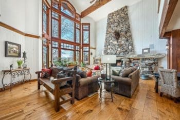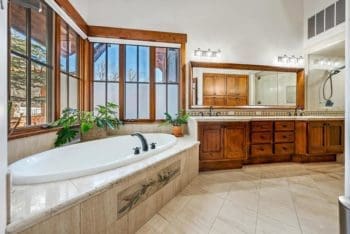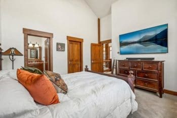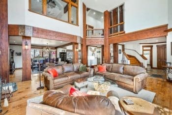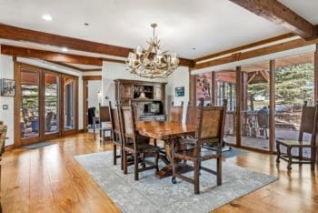 Located in the quiet and secluded neighborhood of Hidden Meadows, this Lower Deer Valley home offers an array of beauty and features for easy living amid Park City’s mountainous Wasatch Back. This two-level, 5-bathroom, 5-bedroom home truly checks all the boxes. With a main floor that hosts a Master bedroom, living, kitchen, dining, guest bedroom, access to the spacious 3 car garage, and walkout to the back patio this home can truly live comfortably on one level. A timeless, subtle country décor pairs well the with voluminous vaulted ceilings that provides natural light filling each room. As one ascends to the second level, they are met with an additional 3 bedrooms, 2nd living space, and upper-level deck. The vaulted ceilings are repeated throughout this level as well and give a sense of airiness to the entire home. The outdoor living space is just as well appointed with a grand outdoor fireplace, kitchen, pergola, and hot tub. As you’re enjoying a summer evening BBQ in the back yard, you’ll quickly notice the privacy as you enjoy the nearly 1 acre that this home sits on.