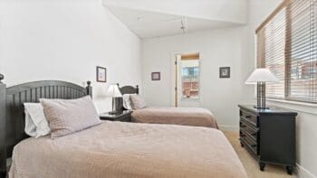 Inside, this townhome boasts beautifully designed interiors, featuring modern amenities and an efficient layout. The primary suite provides a private sanctuary, while the additional bedroom and bathrooms cater perfectly to guests or family members. The upper level is thoughtfully designed with vaulted ceilings and two bonus spaces: one at the landing between the bedrooms, ideal for a home office or additional living/media area, and the other a bonus loft in the guest bedroom, making use of the high vaulted ceilings to offer extra space.