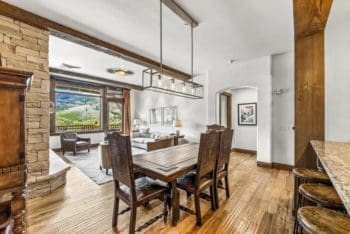 Beautifully designed 2 bedroom + den/sleeps 7 comfortably. Spectacular Lady Morgan Bowl views and beyond. Silver Strike Lodge sits on the Silver Buck Ski Run. SKI-IN/SKI-OUT! Upgraded features include: rich, wood beamed ceilings and archways, custom cabinets, walk in pantry and Viking appliances. The den has been designed as a bunk room that sleeps 3. Absolutely CHARMING! Lives like a 3 bedroom with 3 full baths. Private ski lockers, work-out facilities, Jacuzzi, owner amenities, on-site management and direct ski access to the Silver Strike lift.