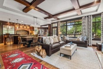 Inside, the kitchen stands out with its top-of-the-line Sub-zero fridge/freezer and Wolf range, making it perfect for preparing family meals. After a day on the slopes, residents can unwind in the hot tub conveniently situated just outside the door, ideal for après-ski relaxation.