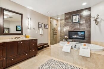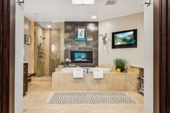 The lodge features numerous high-end upgrades, including a unique convertible dining table that transforms into a high-end pool table. The living room and kitchen windows are fitted with smart automated shears and blackout shades, while smart light switches and Nest smart thermostats ensure a modern and comfortable living environment. A centralized oxygenation system further enhances comfort by simulating optimal altitude levels.