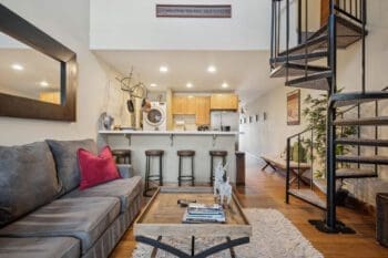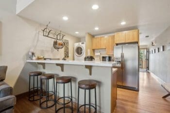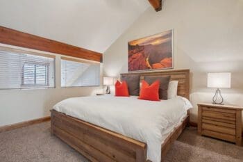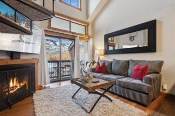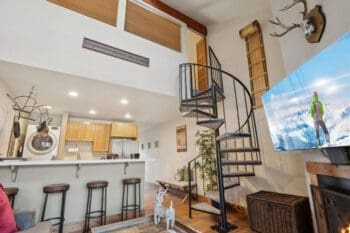This turnkey condo features an open living space with high ceilings, a wood-burning fireplace, and an updated kitchen with solid surface countertops. The main level features a bedroom, bathroom and great room, along with private balcony. The upper level loft features an additional full bathroom and private bedroom.
