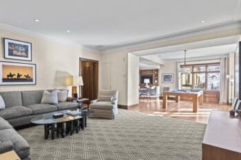 Throughout the residence, custom furnishings and exquisite details elevate the interiors, showcasing impeccable taste and craftsmanship in every corner. Large southwest-facing windows bathe the home in natural light while offering breathtaking views of the iconic Deer Valley slopes.