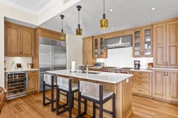 Completely reimagined through a custom remodel, every detail has been meticulously crafted to enhance both beauty and function. Rich chestnut floors create a warm, inviting atmosphere, while elegant wall and window coverings frame the picturesque landscape outside. Thoughtful upgrades, including custom lighting and a high-end sound system, add modern sophistication to this one-of-a-kind home.