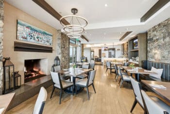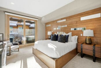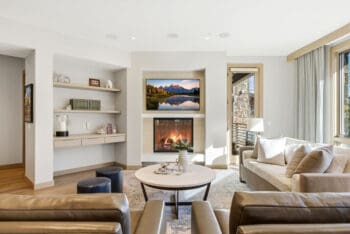 Two gracious bedroom suites offer retreats of their own, each finished with soft textures, refined details, and spa-inspired bathrooms that make unwinding feel effortless. A third full bathroom ensures comfort for guests, whether they’re staying the night or simply stopping by after a ski day.